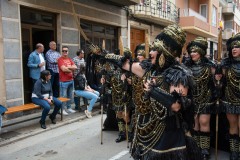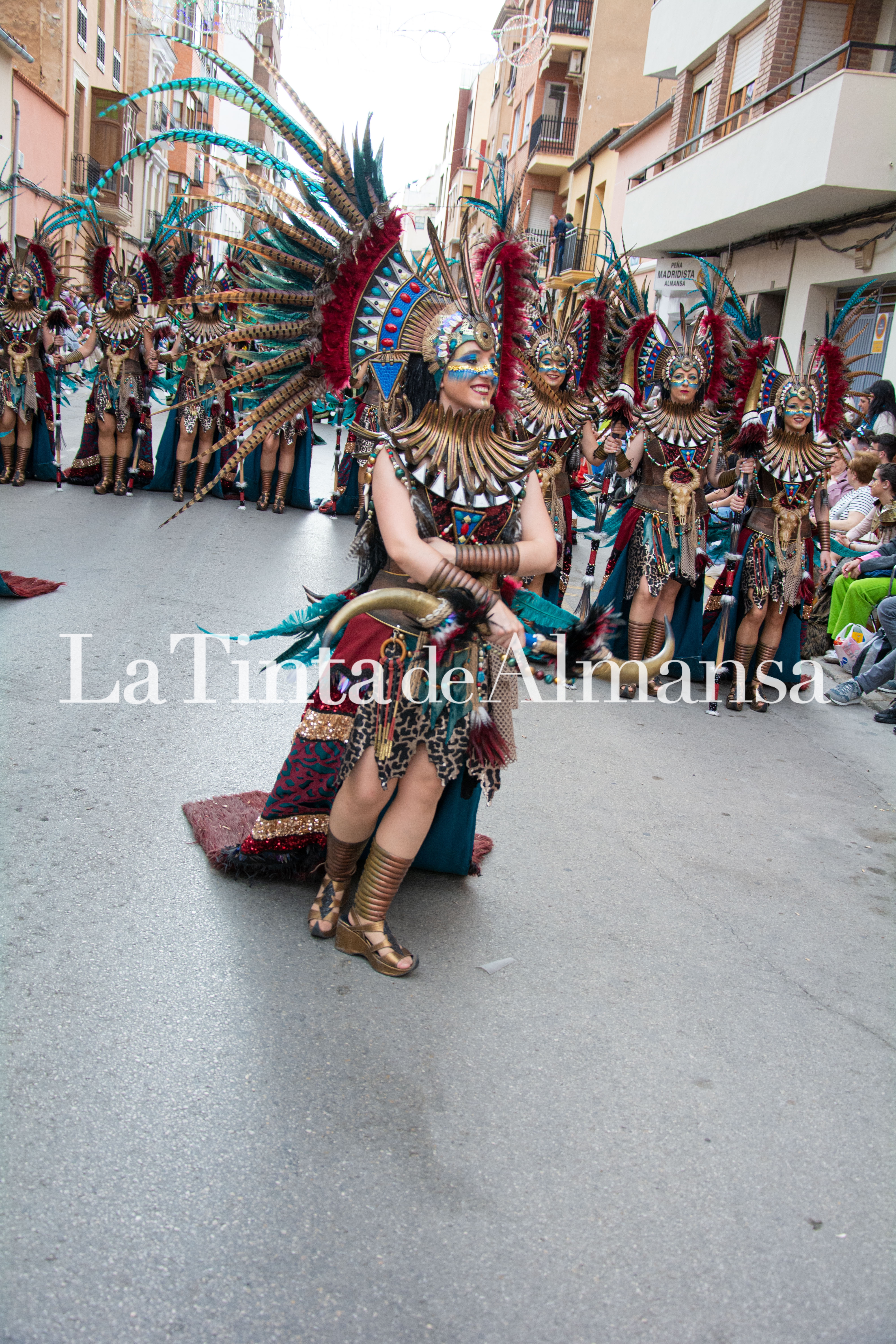 El broche de oro lo puso el homenaje a Los tres mosqueteros de Dumas. La eterna lucha entre la lealtad y la traición cobró forma con el desfile del Regiment de La Couronne, representando a los mosqueteros del Cardenal Richelieu, y frente a ellos, los socios fundadores de la comparsa como Athos, Porthos, Aramis y D’Artagnan. El ballet de Pilar Gómez, con trajes rojo y negro, escenificó el duelo central entre ambos bandos. La música de la Unión Musical Santa Cecilia de Tobarra puso el alma sonora, y el desfile dio paso a las Abanderadas y Alféreces de la Agrupación de Comparsas (Ester Solano Vizcaíno y Andrés Serra Serrano, y Arturo Martí Olaya y Marta Sánchez Laparra).