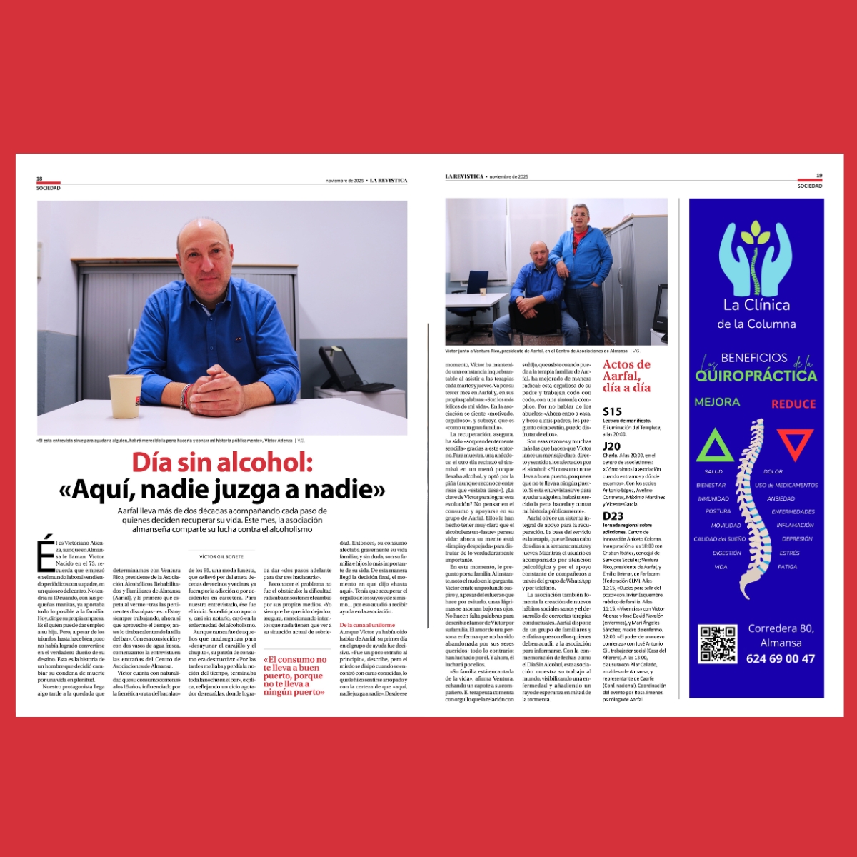 Son esas razones y muchas más las que hacen que Víctor lance un mensaje claro, directo y sentido a los afectados por el alcohol: «El consumo no te lleva a buen puerto, porque es que no te lleva a ningún puerto. Si esta entrevista sirve para ayudar a alguien, habrá merecido la pena hacerla y contar mi historia públicamente».