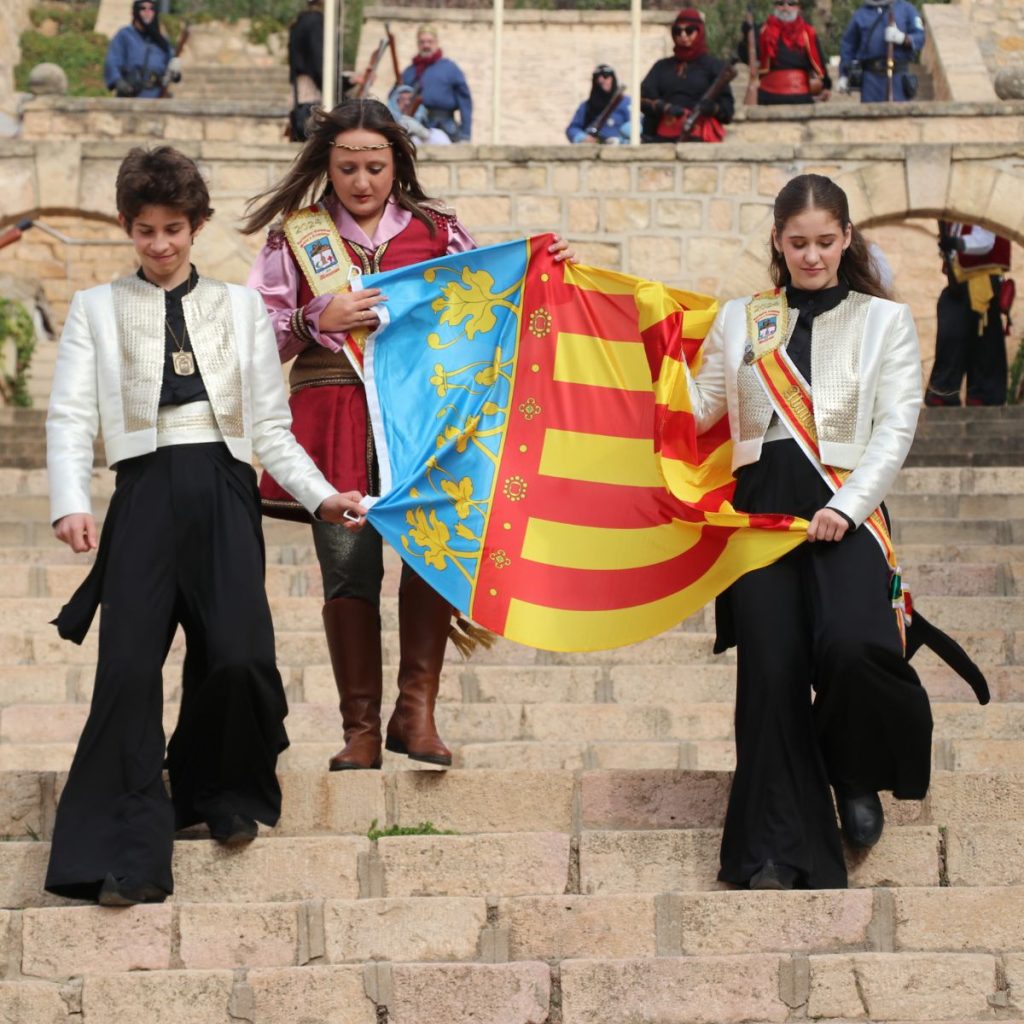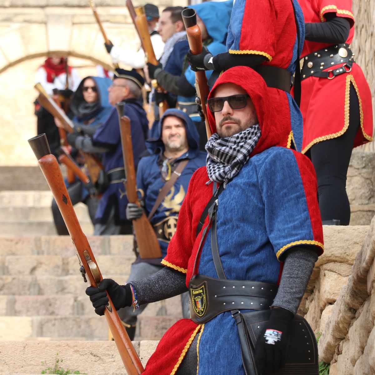 Banderas tras cuatro años consecutivos, un evento muy visual que se ha integrado con éxito junto a la guerrilla de arcabucería a los pies del castillo.
