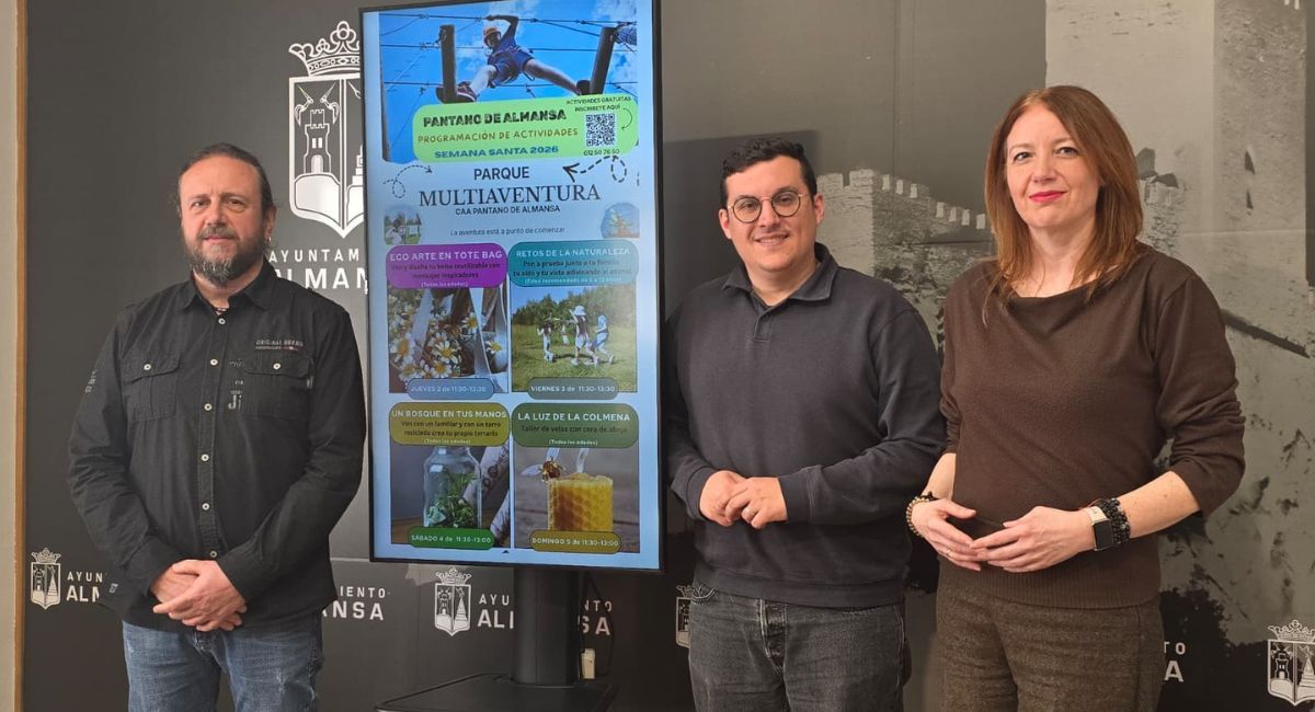 El nuevo parque multiaventura, equipado con circuito aéreo, puente tibetano y tirolina, estará totalmente operativo de cara a Semana Santa junto con las actividades y talleres gratuitos que se desarrollarán en el entorno del pantano. Así lo anunciaron el concejal de Turismo, Javier Boj, junto al edil de Medio Ambiente, Javier Gimeno, y la gerente de la empresa de turismo activo Ágora, Emilia Parra, quienes presentaron este nuevo activo turístico que abrirá sus puertas oficialmente del 2 al 6 de abril.