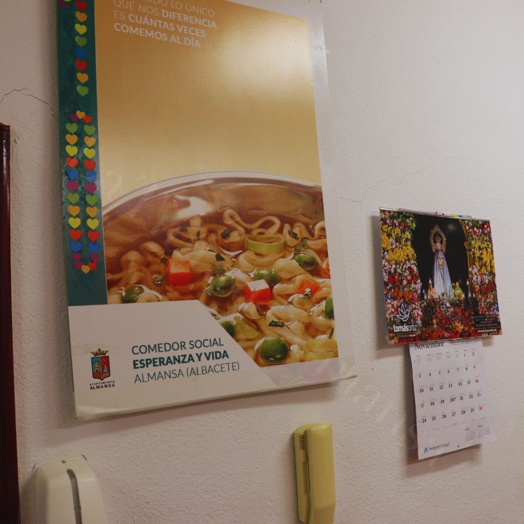 El comedor, que abrió sus puertas hace unos 13 años, tiene como fin primordial asegurar que los usuarios coman por lo menos un plato de caliente al día. Como bien explica Pascuali a La Tinta de Almansa: «Aunque comida fría se puede conseguir en otros lugares, las raciones recién hechas es nuestra especialidad»… y además es ofrecida con cariño, con convicción.