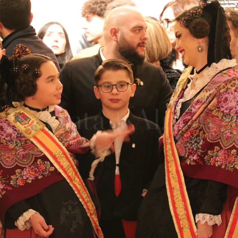 Los actos comenzaron durante la tarde con recepciones en las sedes de las distintas comparsas y un primer encuentro público en el Teatro Principal. A las 21:00 horas, la Casa Grande acogió la recepción oficial por parte de la alcaldesa, Pilar Callado; la concejala de Fiestas, Lola Sáez; y el Presidente de la Agrupación de Comparsas, Francisco Millán, en un Ayuntamiento de Almansa que lució abarrotado de ciudadanos deseosos de conocer a sus representantes, pero eso sí, mejor organizado que en otros años, evitando aglomeraciones y agobios.