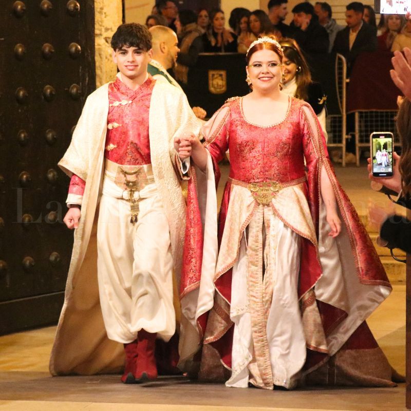 Los primos Alba Tárraga Valdés y Fermín Cerdán Valdés asumen la representación de los Moros y Cristianos en un Teatro Regio entregado a la temática del Camino de Santiago.