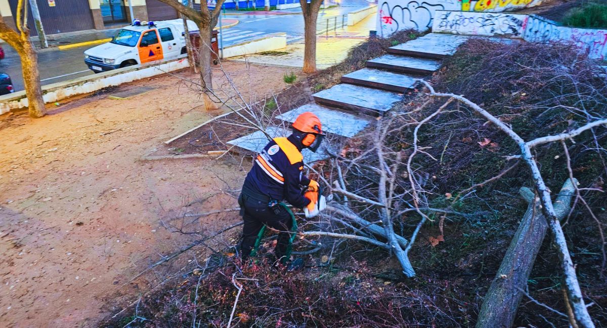 Voluntario de Protección Civil realiza trabajos de poda ante episodio de vientos | Almansa Emergencias